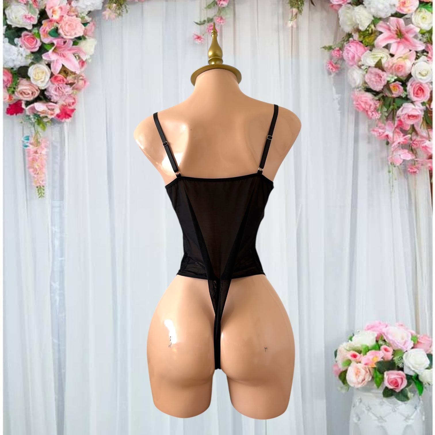 Body de Lencería Negro con Encaje y Control de Barriga - Talla G