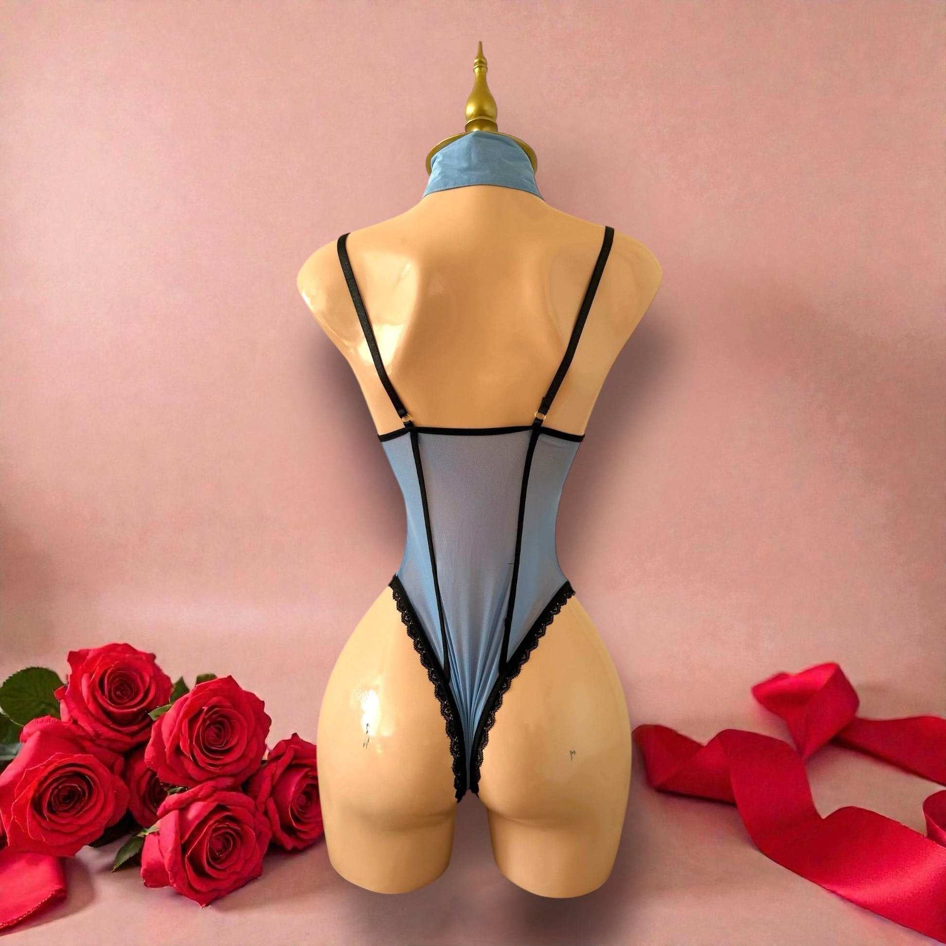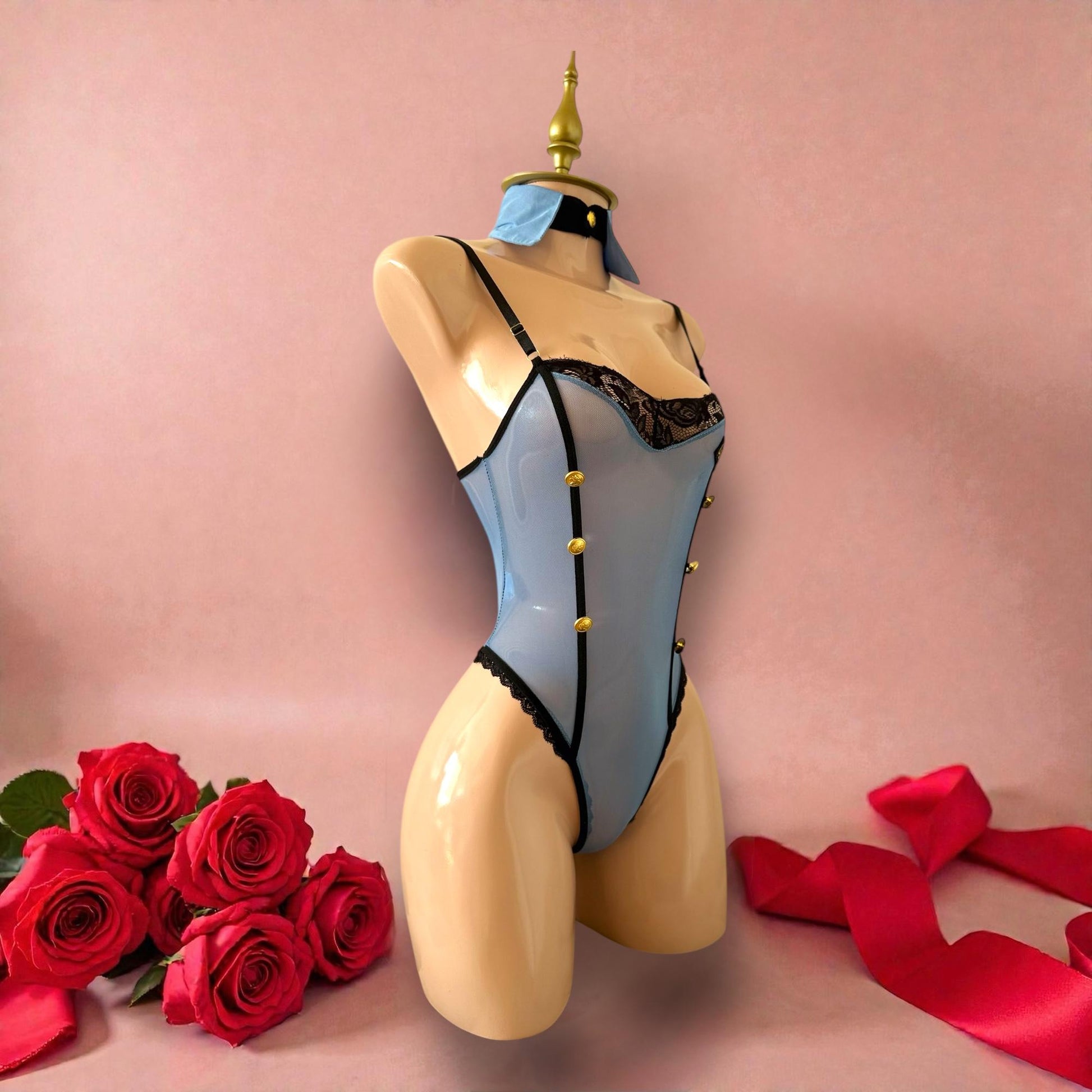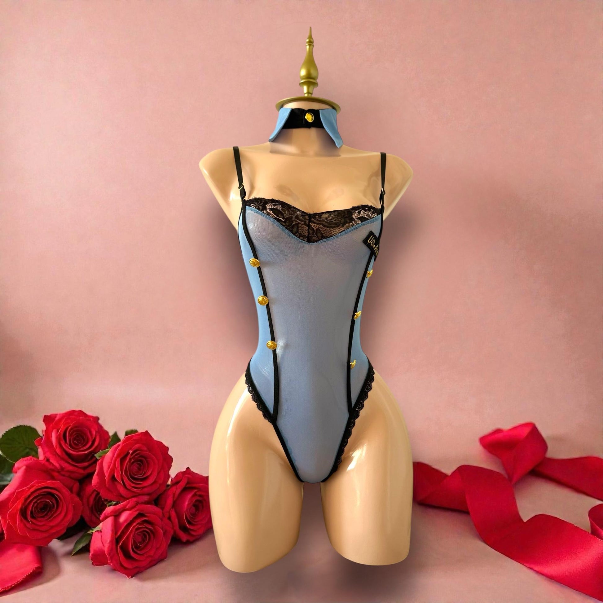 - Body azul cielo estilo uniforme de policía con encaje negro